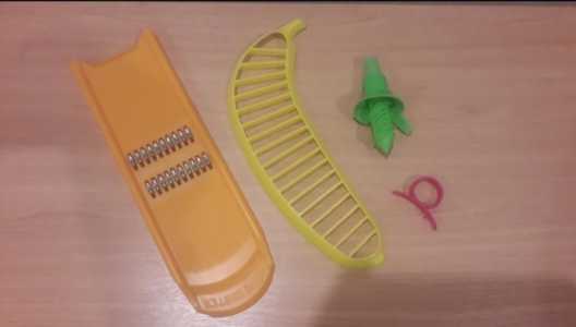 Набор из 4 предметов ( тёрка, бананорезка, соковыжиматель для лимона, очистка цитрусовых)